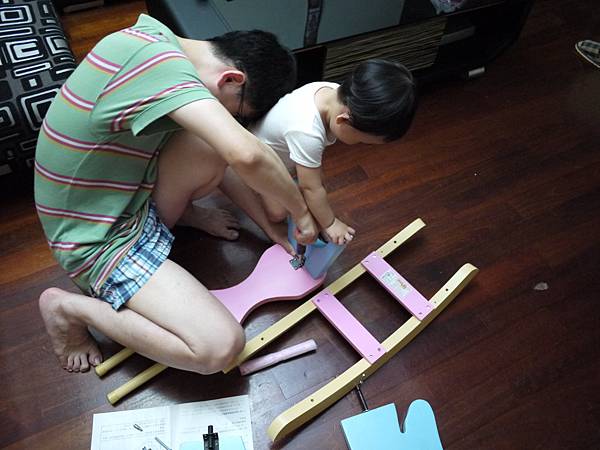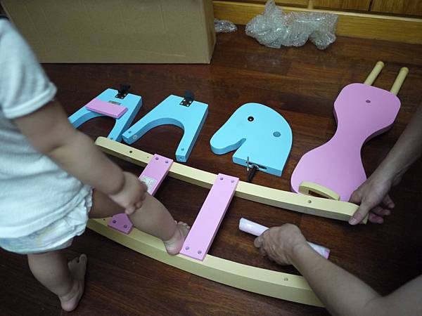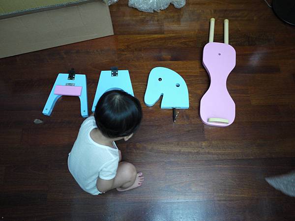 蒲仔搖的很高興 結果我們一把搖搖馬搬開立刻發現木板上有兩道刮痕