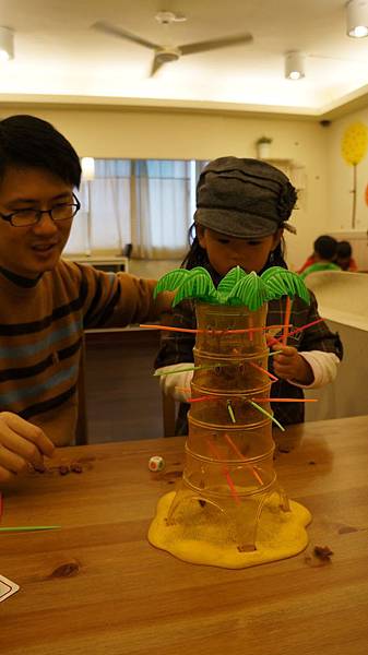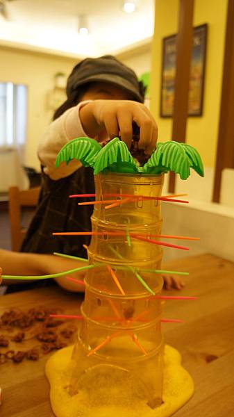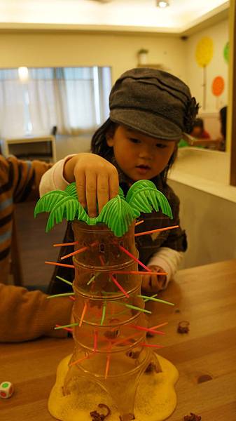 所以她們桌上放著剛剛我們才玩過的跳跳猴…